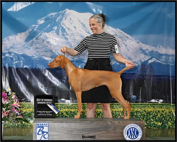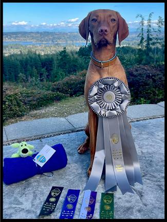 th, 2023 and is from our boy BROCK. She was conceived using frozen semen from her sire who has since passed so she was a very special addition. This young pup is just starting off but has already earned her Rally Novice Obedience title, Best in Sweepstakes, and has already been awarded points towards her Championship. She lives full time with her family in Bremerton. Keep an eye out for this beautiful and talented girl!