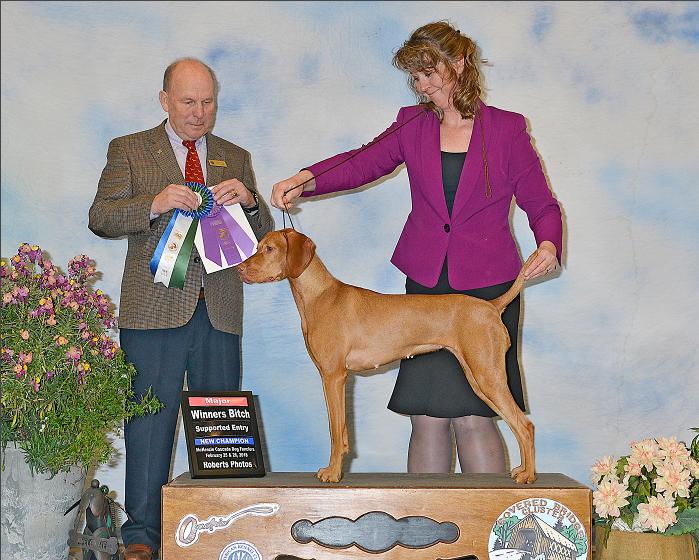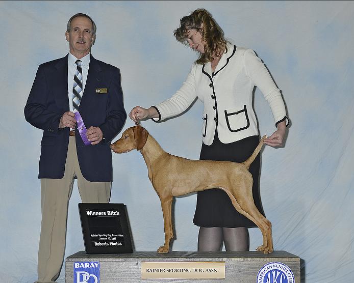 Hottie. She was born June 24, 2016 and finished her championship pretty effortlessly and was exclusively breeder handled. Her wins include a fantastic 5 point major before her first birthday and then she picked up a 4 point major over a specialty weekend during a supported show. She lives with her family full time in Carnation, WA.