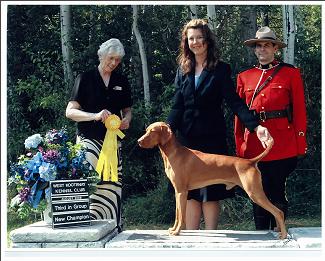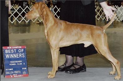 Dezso was our second Vizsla and introduced us to the world of Agility and Obedience competitions. He sired two litters before he passed over the rainbow bridge. We miss him dearly but am thankful he carries on in his offspring. Dezso was bred by Jim Brennan of